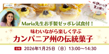 25日(日)13:00~14:30 イタリア文化セミナー≪カンパニア州の伝統菓子≫ Maria先生