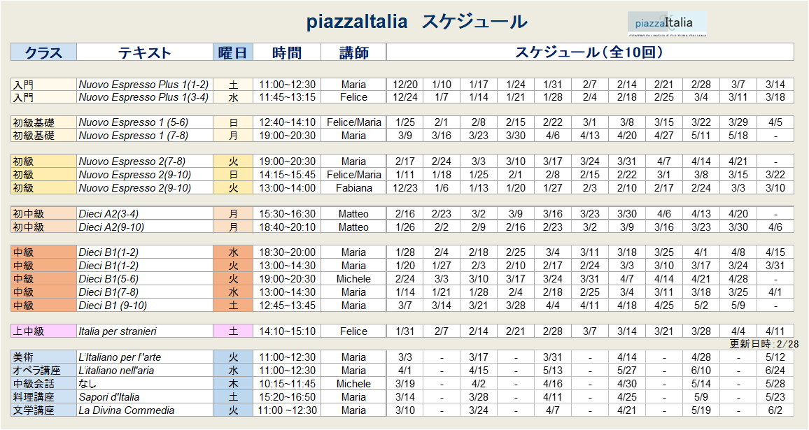 こちらの講座では、オペラに出てくる単語やフレーズを取り入れながら、イタリア語文法を学びます。