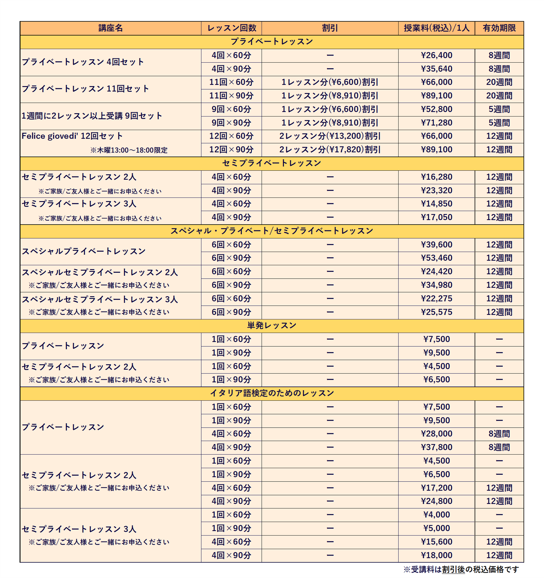 Ⅲ.Felice giovedì(木曜日限定プライベートレッスンの割引)